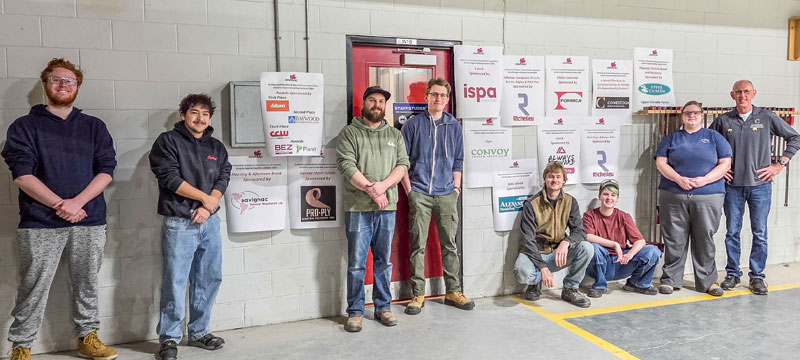From left: Derek Engel, Conestoga College; Matthew Gonzalez, Wood Studio (Humber Grad); Alex Thorne, Convoy Custom Interiors (Humber Grad); Aaron Comeau, Humber College; Bennet Winer, Conestoga College; Noah Williams, Conestoga College; Rachel Loree, Conestoga College; Steve Bader, instructor at Conestoga College.